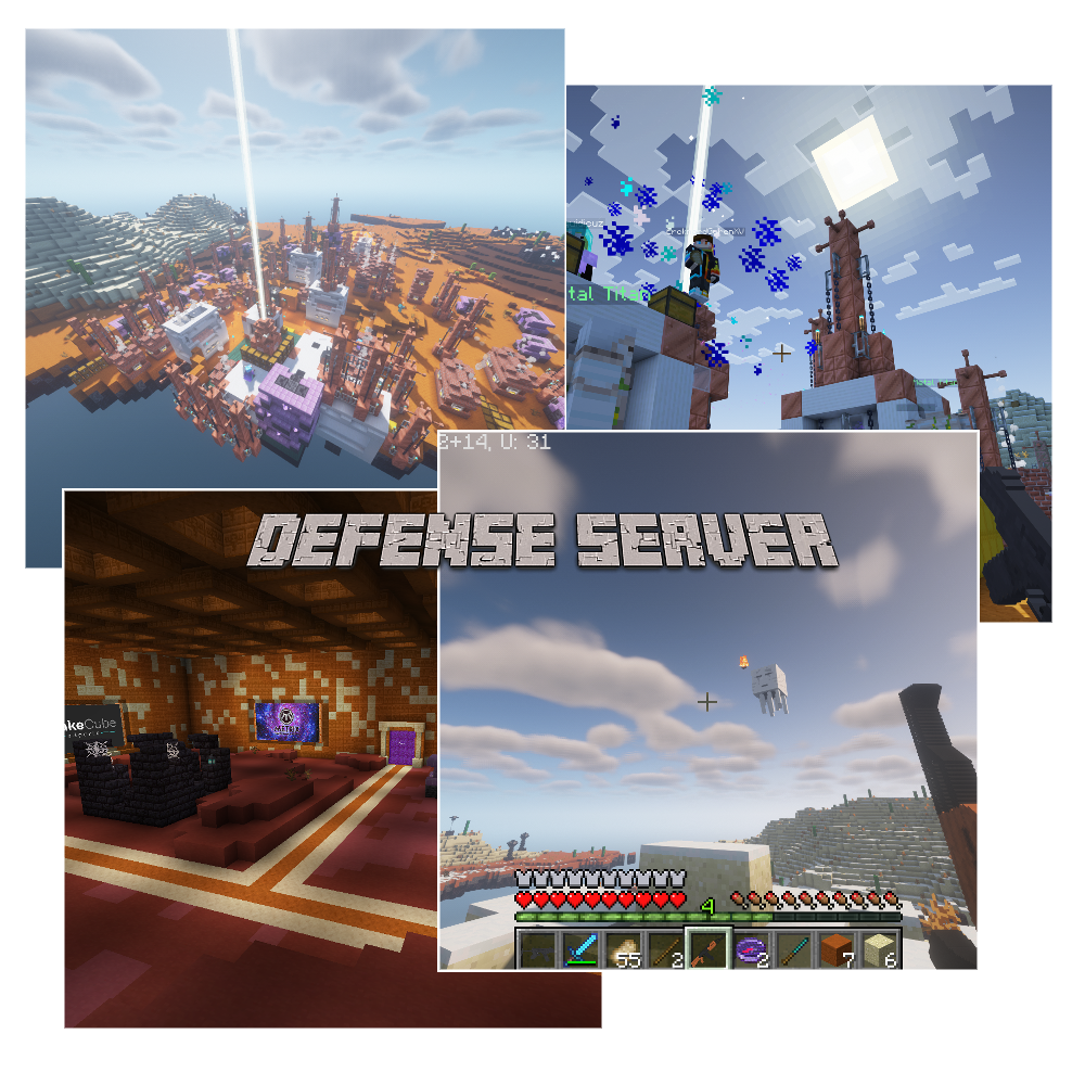 Claim your territory, Forge powerful weapons and tools, structures, explore dungeons, minigames, mine cryptocurrencies and more!